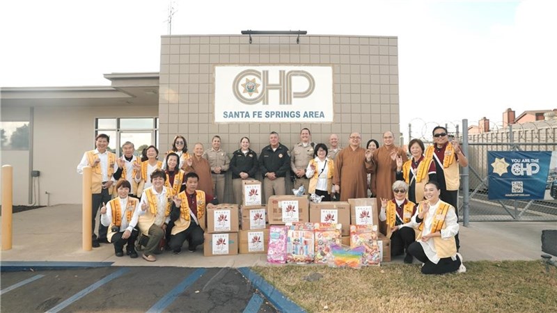 December—a joyous, festive season in America aligned with the spirit of "Giving" championed by Venerable Master Hsing Yun, founder of Fo Guang Shan, occurred once again. After a three-year hiatus—due to the pandemic—Hsi Lai Temple venerable and BLIA (The Buddha’s Light International Association) members resumed the “Buddha’s Light Sharing Love in Winter” event by collecting and distributing donated food, clothing, toys and hygiene products to various locations throughout the greater Los Angeles area to people in need. Compassion and loving-kindness radiated like the warmth of the winter sun, reflected the enduring commitment of the annual event, and helped to ensure that no one was left in the cold nor forgotten.