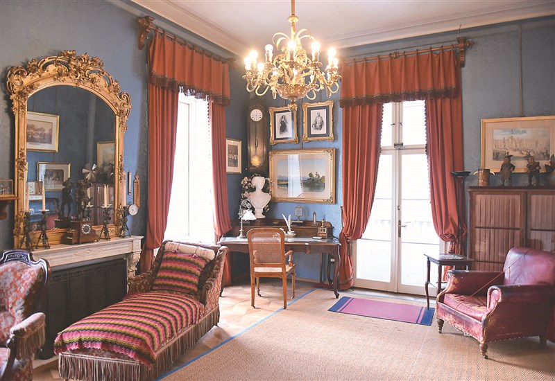 1985年開始,歐盟每年指定數個城市做為歐洲文化之都(European Capital of Culture);奧地利上奧地利州薩爾茨卡默古特地區中心的巴德伊舍(Bad Isch)是2024「歐洲文化之都」之一,該地區擁有秀美自然風光及深厚文化底蘊,1849年,奧匈帝國皇帝約瑟夫一世在此建立夏宮,1853年也在這裡與茜茜公主舉行訂婚儀式。上圖為當地手工藝者製作的手風琴,右圖為夏宮內的書房。 圖/新華社