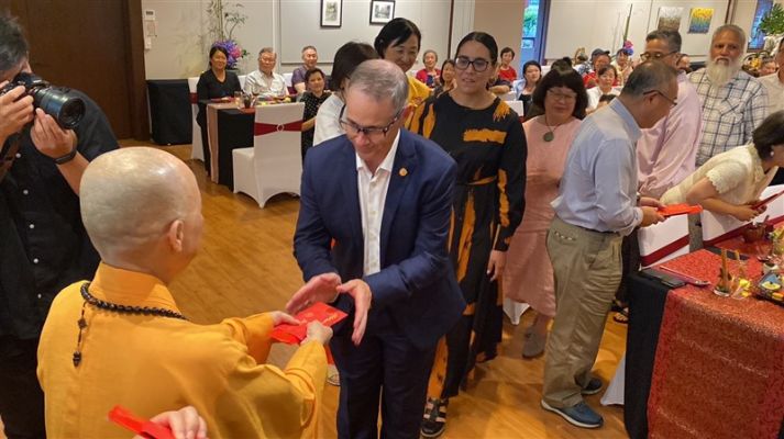 Abbess distributed auspicious New Year red envelopes and longevity noodles to the attendees. photo/FGS NZ