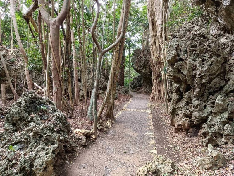 【本報屏東訊】墾丁國家森林遊樂區古榕道區有高位珊瑚礁獨特地貌,林業保育署屏東分署為使步道融入整體環境,將鋪面改以泥沙結合碎石、步道邊緣以咾咕石排列,提供旅客新體驗。