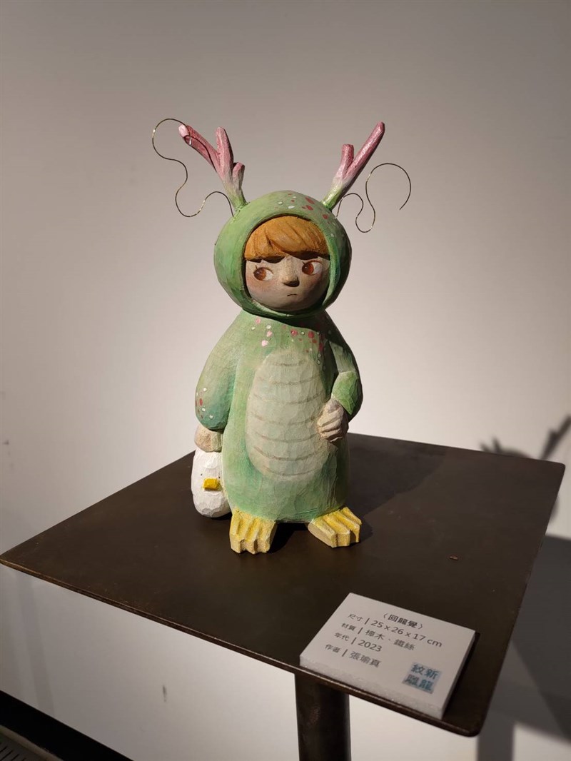 聯展除呼應新春生肖,當中不少藝術家更別具巧思,像是來自彰化、前往日本攻讀東京藝術大學碩士學位的楊運臻,就以作品《山海經–甲辰舞》為發想,讓舞者雙手巧妙拿著龍首與龍尾起舞,展現令人會心一笑的另類創意。