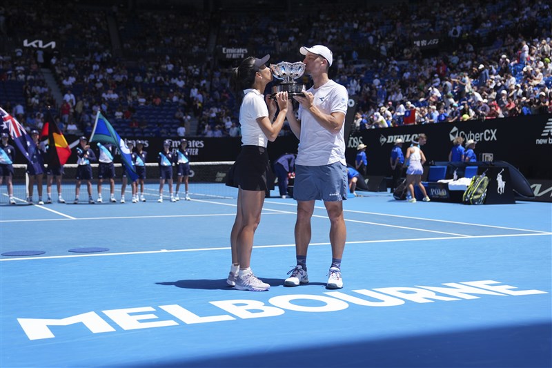澳網/38歲再創巔峰 謝淑薇摘大滿貫混雙首冠 張哲郢 |2024.01.26 語音朗讀 3116觀看次 字級 大 中 小 謝淑薇(左)與傑林斯基(右)首度合拍雙雙打下彼此生涯大滿貫賽首座混雙冠軍。圖/美聯社 【記者張哲郢綜合報導】澳洲網球公開賽混雙決賽26日登場,謝淑薇與波蘭搭檔傑林斯基(Jan Zielinski)倒吃甘蔗,以7:6(5)、6:4、11:9打敗英國斯庫普斯基(Neal Skupski)/美國卡胡琪(Desirae Krawczyk),奪得冠軍。台波組合首次合拍就一路打進冠軍賽,對決2021、2022年溫布頓網球錦標賽混雙連霸得主美英組合,首盤一路打到搶七,可惜台波組合差一步,由美英組合先拿首盤。次盤台波組合一度2:4落後,但2人急拉尾盤,連破帶保並在謝淑薇關鍵網前截擊,連趕4局扳平戰局。超級搶十台波組合4:0開局看似順利,卻被對手追成7:7,甚至一度以8:9陷入落敗邊緣,但台波組合化解冠軍點後要回優勢,連拿3分把冠軍搶到手。這座混雙冠軍對謝淑薇與傑林斯基都是創舉,謝淑薇在38歲這年終於首嘗大滿貫賽混雙金盃滋味,讓自己生涯再留下一筆輝煌紀錄;而傑林斯基去年4次挑戰大滿貫賽混雙都一輪遊,今年不只突破還奪得生涯首冠。謝淑薇(左)開心與傑林斯基(右)慶祝。圖/美聯社賽後謝淑薇透露,直到澳網要開打前,她都還在尋找混雙搭檔,此時傑林斯基找上了她,真的非常感謝。謝淑薇認為,對手是知名的混雙球員,這場比賽打下來非常艱難,但她做到了,也謝謝球迷跟贊助商造就這麼棒的澳網。傑林斯基說:「這是我的第1次我更開心,我們真的到比賽前1、2天才合拍,但我們意外合作的很順利,整個過程很有趣,期待日後我們能繼續合作。」摘下混雙首冠後,謝淑薇還有機會挑戰另一項前無古人紀錄,她28日將與比利時搭檔梅藤絲(Elise Mertens)在女雙決賽登場,若進帳雙冠將是台灣史上第1位在單一大滿貫賽抱走雙冠的球員。賽後謝淑薇(左)與傑林斯基(右)親吻澳網混雙冠軍獎盃。圖/美聯社 前一篇文章 赴日旅客多 2月起可在桃機「預先通關」 下一篇文章 中職/悍將新洋投布藍登 去年墨聯勝投王 熱門新聞 01《化為千手》醫者路 黃致錕為病友證婚2026.02.1402純真博物館 重現書中世界2026.02.1503澳洲荒野 打造減碳儲能系統2026.02.1404星雲大師全集⑳【佛教管理學③】弘法系列人事篇 人事管理法③2026.02.1405【聊聊心裡事】內耗,是因心裡有兩隻貓在打架2026.02.1406嘉年華狂歡2026.02.1507日本出動4船圍捕 扣押大陸漁船2026.02.14089天春節連假展開 湧返鄉人潮2026.02.1409禁用娃娃兵日 哥倫比亞響應2026.02.1410全球馬博物館巡遊 見證文明史 2026.02.15 訂閱電子報 台北市 天氣預報 台灣一週天氣預報 相關報導 總統登小雪山拜年 談話聚焦國防經濟蘭嶼巡防艦交船台美貿協敲定 學者:短空長多 4年42.5億元 助中小微企業升級賴率三軍司令 催速審國防預算涉貪汙 高金素梅住辦遭搜索 作者其他文章2026體壇大賽連發 看點滿滿經典賽熱身 中華隊首戰險勝雄鷹世界棒球經典賽 各隊備戰3月5日開打運動幣60萬人中獎 3月1日領取冬奧開幕 首創4地連線進場 WBC中華隊 旅外戰力強悍