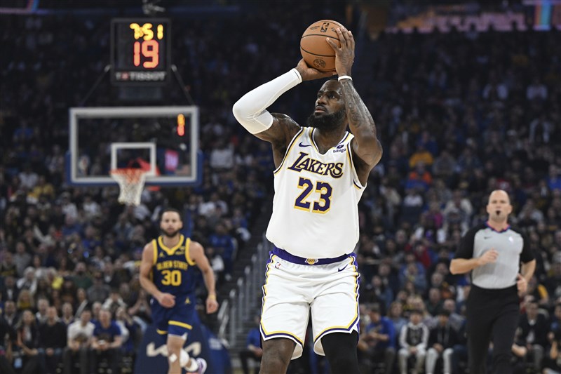 【記者張哲郢綜合外電報導】NBA美國職籃兩大人氣球隊洛杉磯湖人、金州勇士27日本季首度交手,初見即2度延長,勇士在柯瑞(Stephen Curry)命中3分後一度在剩餘4.7秒反超,回頭詹姆斯(LeBron James)2罰俱中,湖人145:144氣走勇士。