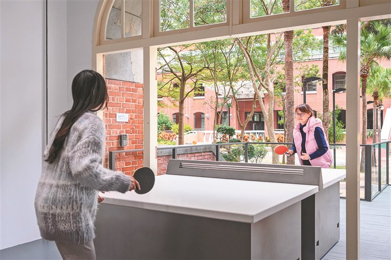 【記者曹麗蕙台北報導】台北當代藝術館是全台第一座與學校共構的美術館,與台北市建成國中以一扇白門相隔。藝術家賴志盛以此為發想,打造一個全新的「川堂」場域,串聯當代館與學校,同時擺放白色石桌,邀觀眾一起打乒乓球,喚醒昔日的青春記憶。