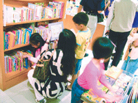 小朋友進入書局後非常興奮,許多男童衝到漫畫書區,女童則到玩具區和文具區選購。