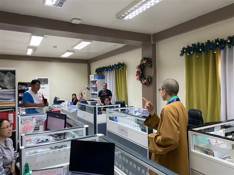 Venerable Miao Jing led Venerable Zhi Rong and Nichole to visit Dr. Manuel, the School Division Superintendent of the Department of Education in Baybay City on the morning of January 19th. photo/FGS Mabuhay Temple