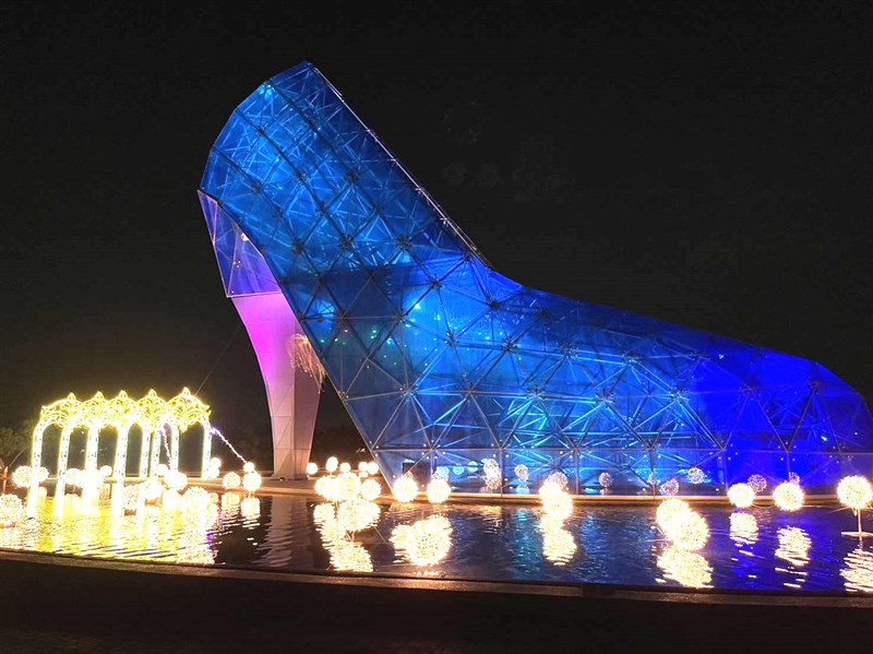 【記者江俊亮嘉義報導】嘉義縣濱海景點高跟鞋教堂,是金氏世界紀錄認證全球最大的高跟鞋造型建築物,最近由雲嘉南濱海國家風景區進行燈光改造,包括戶外水池「粉漾愛情海」、南瓜馬車「愛不止息」、室內光纖水母「夢幻精靈」等,營造浪漫氣氛。