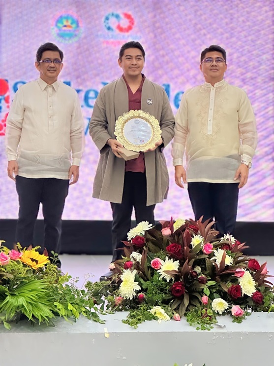 Dr. Salustiano T. Jimenez(right), Regional Director Department of Education – VII, Department of Education Cebu City, presenting recognition pledge to FGS Siddhartha Theater Ensemble and was received by Director Junrey Alayacyac. photo/The Life News Agency