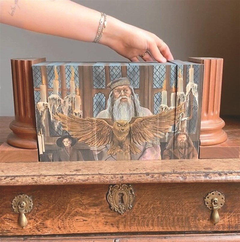 為舊書加值 書口繪畫快失傳 |2024.02.07 語音朗讀 504觀看次 字級 大 中 小 《冰與火之歌》系列小說,是美國作家及編劇馬丁的代表作。 圖/取自網路瑪蒂爾達將書放入夾板,使頁面保持一致,以便在邊緣繪畫。JK羅琳的《哈利波特》,書中角色鄧不利多校長與貓頭鷹。 【本報綜合外電報導】裝飾書頁邊緣是一個有數百年歷史的傳統,儘管有傳言說它最初是作為英國皇室識別書籍的一種方式,但它後來轉變為一種複雜的藝術形式,包括肖像、風景和小說場景,儘管很美麗,但這種工藝如今極度稀有,全球各地很少人仍在練習;英國藝術家瑪蒂爾達(Maisie Matilda)繼承書口繪畫(fore-edge painting)的傳統,將舊書升級改造為珍貴的財產,她的作品不僅是藝術,更是一項文化保護行為,使世界幾乎消失的傳統得以延續。瑪蒂爾達在IG和TikTok上分享製作過程影片,不僅展示這項工藝是如何完成,還激勵新一代藝術家學習書口繪畫,她在每件作品開始時,都會展示將要處理的書(某些情況下是多本書),然後將書放入夾板,這樣可以使頁面保持平整,以便她可以在書頁邊緣繪製草圖和設計。結合藝術文學將熱情變職業她創作的藝術作品通常在某種程度與書中故事相關,例如《魔戒》系列中的廣闊風景、《哈利波特》中的主要角色以及《暮光之城》中的重要場景。「我一直熱愛藝術和奇幻文學,所以我決定將熱情變成職業」,瑪蒂爾達表示:「幾年前疫情封鎖期間,我開始自學書口繪畫,從那時起我幾乎每天都在做這件事,我主要創作奇幻小說,但也嘗試過一些古典文學。」完成畫作後,瑪蒂爾達透過翻閱裝飾過的書頁展示這種效果,看著插圖如何隨著書頁落回原位而消失並重新組合在一起,雖然這種藝術形式是小眾且要求較高的,但它甚至可以將二手書變成珍貴的物品,希望更多的藝術家和書籍愛好者,能夠在這些他們最喜歡的故事藝術演繹得到欣賞。只要掌握技巧大家都可以學瑪蒂爾達解釋過程:「創作一幅書口畫其實並不像看起來那麼令人畏懼,雖然你必須習慣繪畫的表面,不過一旦你掌握技巧,這真的很容易;我習慣在大畫布上畫複雜的風景,然而,我發現自己對微小細節著迷,所以能夠在較小的表面上工作;使用我最喜歡的書中場景,對我來說也非常有效,因為我患有過動症,所以能夠將這麼多我喜歡的東西合併到一件工藝品中,可以滿足我的散漫大腦。」目前現存的書口畫,大多產於19世紀末期或20世紀初期,而後者是稍早19世紀書籍的再版。在世界各地有些圖書館收藏這種具有書口畫的書籍,除了藝術價值之外,據信也有傳遞祕密訊息的實際用途,這些藏在書口上的祕密,如果不用手翻摺書頁,不太容易被發現。 前一篇文章 3道具重現神隱少女姓名飛散畫面 下一篇文章 從上海返回湖北過年 母子騎單車700公里 拍片記錄點滴 熱門新聞 01【遨遊藝事】 威尼斯沉船書店2025.12.2902【獻給動物朋友的詩】 最可愛的動物詩路2025.12.2503【中醫專欄】 中醫防失智之道2025.12.2704【寰宇采風】京都最溫柔的秋色:紅葉永觀堂2025.12.2605台北道場歲末聯誼 感謝義工同行菩薩道2025.12.2706南瓜籽紅豆黑芝麻 含天然助眠營養素2025.12.2607新馬寺率大馬校長團 訪佛光大學2025.12.2708社論--悲憐天下父母心2025.12.2509世界神明聯誼會 佛神共祈和平2025.12.2610宜蘭7.0地震 921後第3強震2025.12.29 訂閱電子報 台北市 天氣預報 台灣一週天氣預報 相關報導 辛苦轉乘電車 粉絲買到目黑蓮車票發現新品種蟾蜍 身長僅1.4公分英50便士舊硬幣 拍價飆278倍托運行李太貴 催生裸飛新熱潮保育奇蹟 亞洲獅從極危增至891隻國人遊埃及 撿到台大學生證