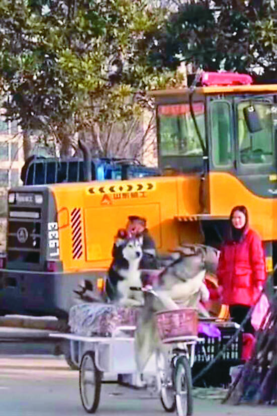 【本報綜合報導】中國大陸近日瘋傳一部影片,兩隻哈士奇在主人和老闆不注意的情況下,聯手「偷」騎走了一輛賣切糕的三輪車。