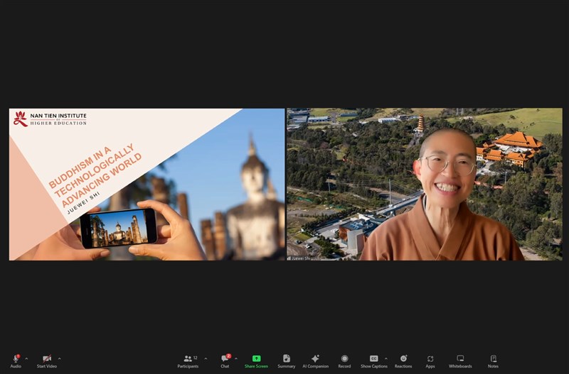 Venerable Dr. Jue Wei, Director of the Humanistic Buddhism Centre, delivered an online dharma talk titled "Buddhism in a Technologically Advancing World." photo/The Life News Agency