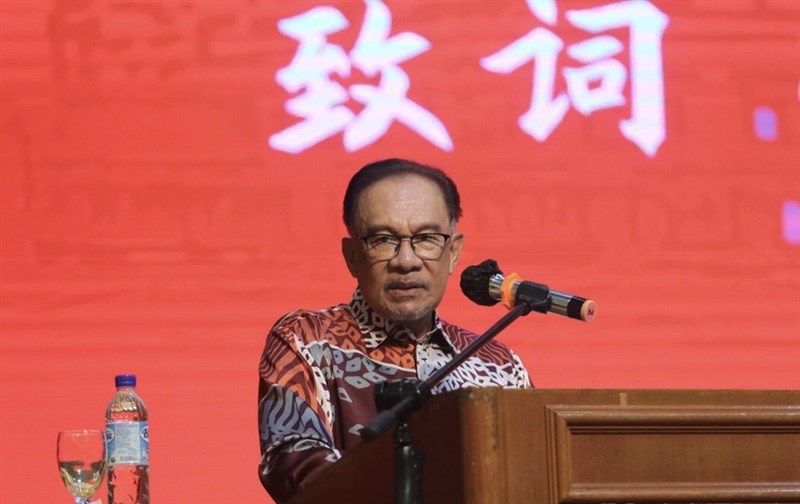 馬來西亞首相安華,大年初一出席隆雪華堂新春團拜,他並大秀中文歡慶春節,祝福「新年快樂、新年好,年年好」,獲如雷掌聲。圖/中央社