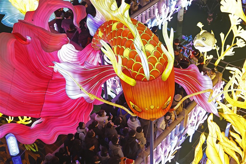 【本報綜合外電報導】中國大陸最大燈會之一的上海豫園燈會1月21日點燈,40天的展期以「山海經」故事為主題,春節期間吸引大量人潮,不少網紅到現場打卡直播拚流量。由於人潮眾多,部分燈區得排隊超過1小時才能參觀。