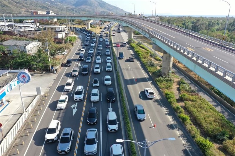 春節返鄉車流湧現,依屏東縣警方統計,台1線加台17線南下路段10至12日全日車流皆逾4萬PCU(小客車當量),警方為紓解交通,於13日首次啟用最長雙點北上調撥措施。圖/屏東縣警方提供