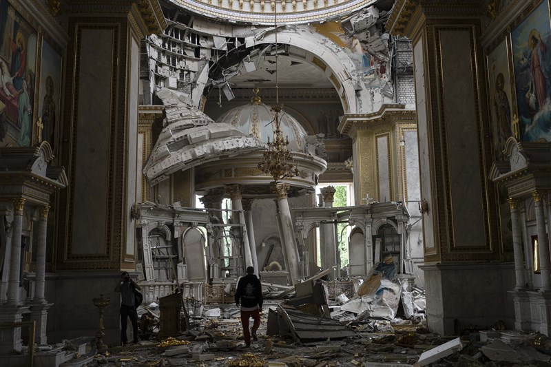 2023年7月,烏克蘭敖德薩的主顯聖容大教堂在俄軍襲擊下嚴重毀損。圖/美聯社