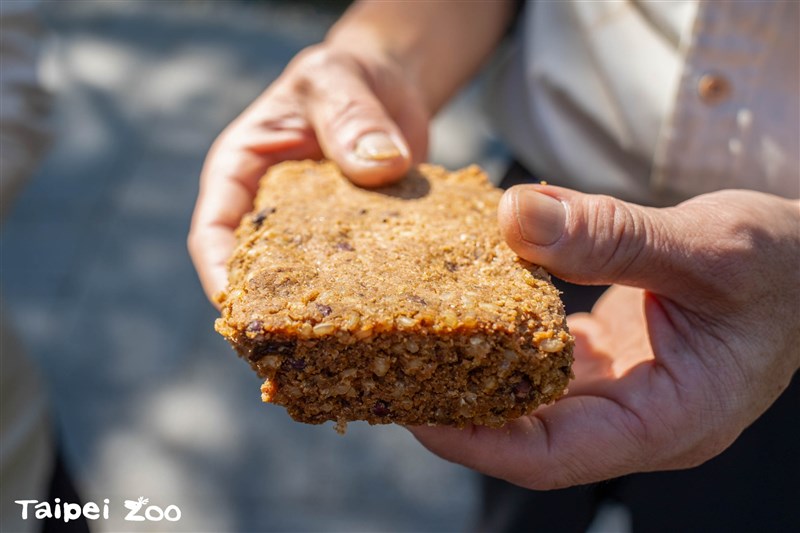 動物園表示,猴米糕原料包含糙米、黑糖、葡萄乾、奶粉、大豆蛋白粉及紅豆等,先拌勻所有材料,再以電鍋蒸熟,直接壓製成型。