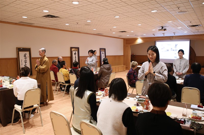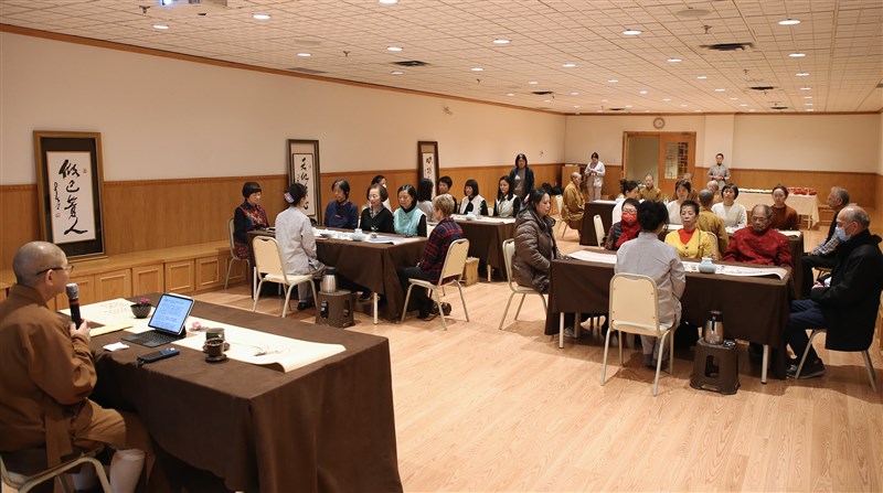 On the afternoon of February 3rd, 2024, FGS Toronto held a "Thank You Chan Tea Gathering" in the meditation hall for the first time, expressing gratitude to the teachers for their hard work in teaching over the past year. Abbess Venerable Chueh Fan first led everyone to sit upright and relax their minds. photo/Tracy Liu