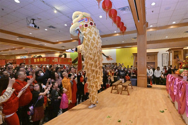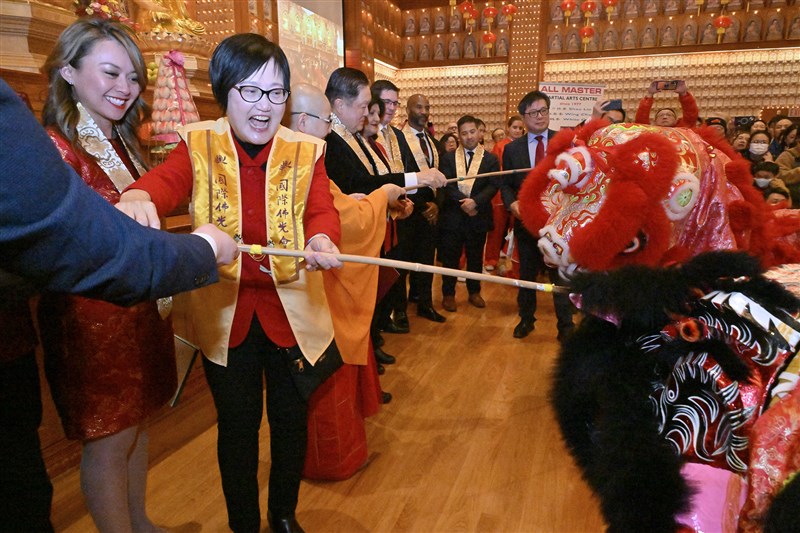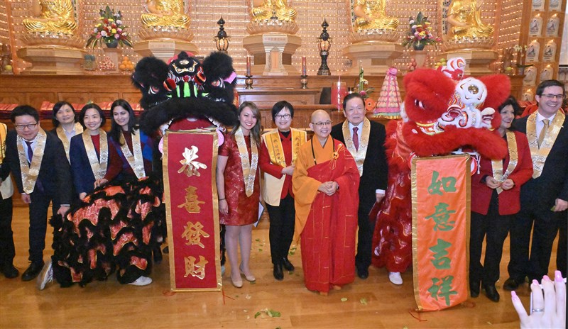 Canadian government representatives enjoy the lion dance and preside over the Opening Year Peace Bell ceremony at Fo Guang Shan Temple of Toronto. photo/The Life News Agency
