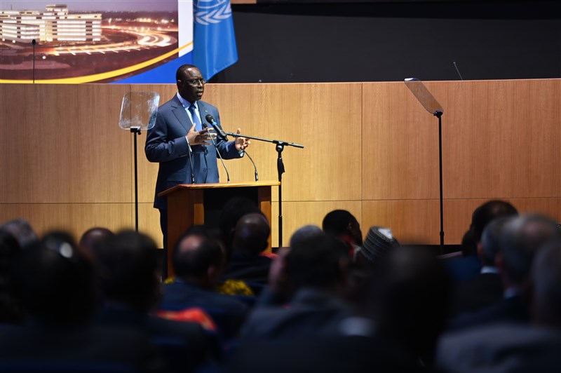 塞內加爾憲法委員會昨天推翻國會將原定本月25日總統大選延後至12月的決定,總統薩爾(Macky Sall)面臨國內外愈來愈大的壓力,今天承諾「儘快」舉辦大選。圖為去年塞內加爾總統薩爾在首都達喀爾舉行的駐西非聯合國機構辦公樓項目竣工儀式上講話。圖/新華社