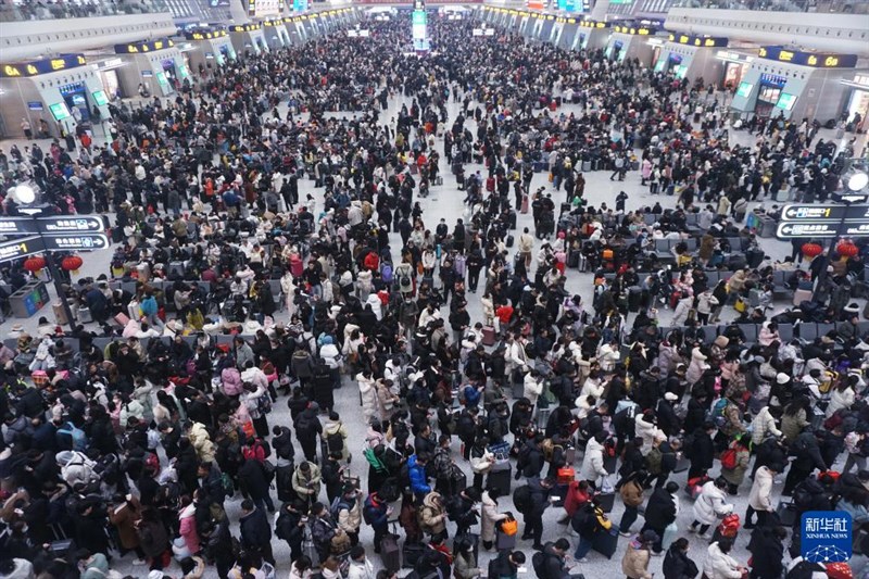 【本報綜合外報導】今(17)日是大陸春節假期最後一天,各地湧現收假返程人潮。中國國鐵集團表示,全國鐵路已連續3天刷新春運單日旅客發送量歷史新高,預計17日發送旅客數達1,620萬人次,安排加開旅客列車2,256列,將再創新高。另根據官方推估,大陸今年春節8天連假,全社會跨區域人員流動量預計累計達23.11億人次。