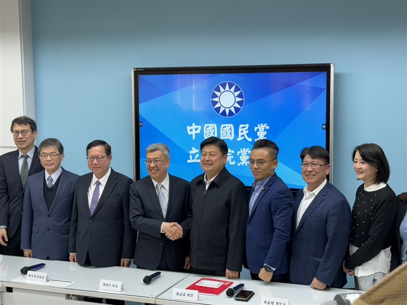 行政院長陳建仁(左四)昨天拜會立法院,國民黨團、民眾黨團同聲質疑禁團令於法無據。圖/張睿廷