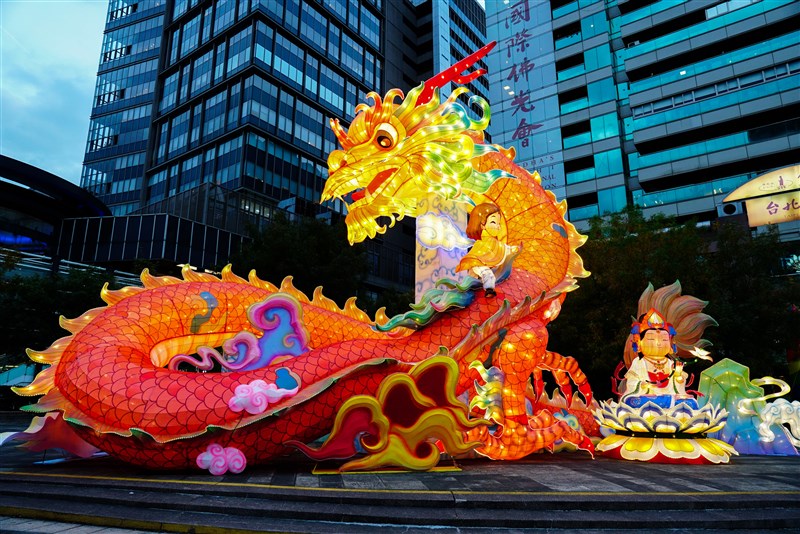 佛光山燈區主燈「龍天護佑」。圖/記者張睿杰