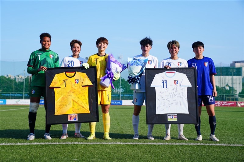蔡明容(左3)與賴麗琴(右3)正式卸下中華女足戰袍。圖/足協提供