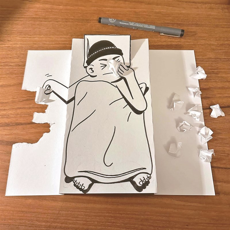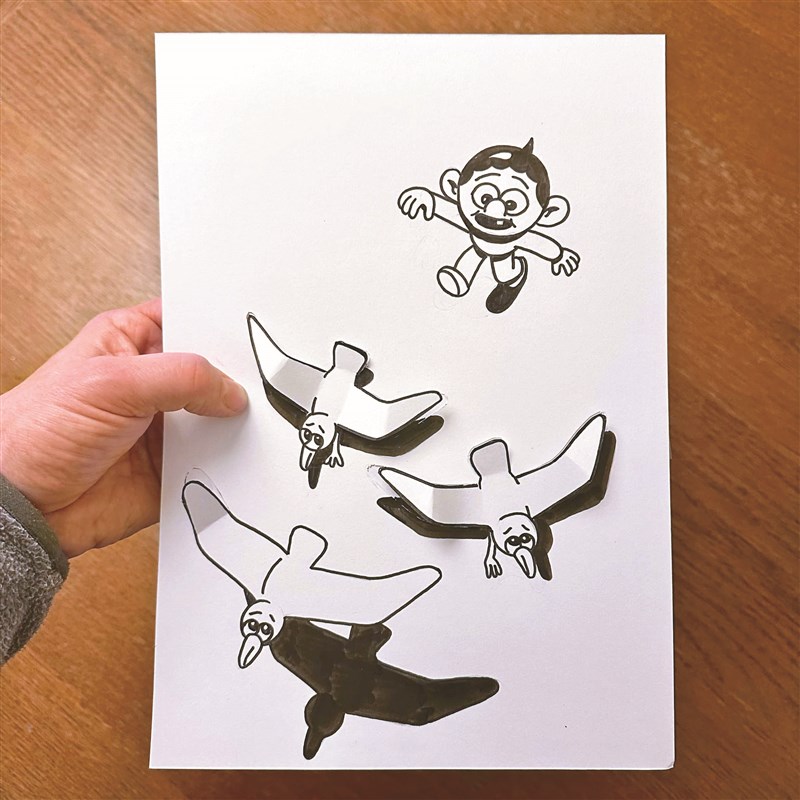 只用筆和紙 就讓塗鴉活起來 |2024.02.21 語音朗讀 1354觀看次 字級 大 中 小 HuskMitNavn的創作只需要一張白紙和一支筆,就能營造出新鮮的3D效果。 圖/取自FB@HuskMitNavn 【本報綜合外電報導】拒絕公開本名的HuskMitNavn是一位丹麥藝術家的化名,他的創作只需要一張白紙和一支筆,別出心裁地將紙揉皺、撕碎切割,配合場景及光影,就能營造出新鮮的3D效果,讓平面的人物躍然呈現在眼前,翻轉眾人對一張紙應該平整潔白的刻板印象,超有創意的手法讓他的IG帳號追蹤人數突破20萬大關。「HuskMitNavn」在冰島文的意思是「記住我的名字」,未曾露臉、真面目相當神祕的他,雖然在童話小鎮哥本哈根生活和工作,但作品風格卻充滿幽默,而且取材來自大多數人生活中都會遇到的事情。出生於1975年的他在哥本哈根近郊長大,從藝術學校畢業後,在進行建築物壁畫和海報作業的時候,開始使用HuskMitNavn這個化名。圖/取自FB@HuskMitNavn幽默化名 記住我的名字「發傳單的時候,人們就會馬上拿走扔掉」,HuskMitNavn解釋:「因此,在一個角落裡寫上『請記住我的名字』,這是作者的名字,我認為很有意思,讓人心情也不錯,就真的把它作為化名了。」他的作品像塗鴉一般,但卻不是塗鴉,而是類似「立體畫」,HuskMitNavn表示:「我追求的是『嬉戲的藝術』,希望任何人在看到我所創造的繪畫形象後,能想到完全不同方式的新畫法。」圖/取自FB@HuskMitNavn「製作3D繪圖是一個漫長且持續的過程」,HuskMitNavn指出:「我一生都在平面紙上畫了很多畫,幾年前的一天,我開始試驗這張紙,看看是否可以為其增加另一個角度,我最初的想法是讓它變得非常簡單,只需要使用A4尺寸的紙和筆,不用剪刀或膠水,我希望每個人都加入,並嘗試在廚房的餐桌上創作3D繪圖。」HuskMitNavn創作時,迅速地將一張上頭有塗鴉的A4白紙弄皺、折起來、撕開構成的「狀況」形象,就是他最終的創作結晶。圖/取自FB@HuskMitNavn主題人物 像是漫畫角色他還是一個專職插畫家,作品多樣而且風格獨特,從插畫、噴畫、童書、複合媒材、到T恤設計都有,HuskMitNavn也舉辦過各式各樣的展覽,是個多產的藝術家。HuskMitNavn同時也從事街頭藝術與壁畫,並與哥本哈根許多畫廊合作展示他的作品,將他的特色人物描繪成荒誕的漫畫書般場景,提出關於政治、社會、現代生活和廣告業有爭議的觀點。他的藝術包含多樣性,從公共場所的塗鴉和印刷媒體的插圖,以及繪畫和社交媒體,這些作品經常被國際畫廊展出並被公共機構收藏,包括哥本哈根的丹麥國立美術館(Statens Museum for Kunst)。圖/取自FB@HuskMitNavn 前一篇文章 生4隻全留 狗媽媽跪謝飼主 下一篇文章 獲397萬遺產 送貨司機全捐做慈善 熱門新聞 01銀杏點亮.東京印象2025.12.2302【獻給動物朋友的詩】 最可愛的動物詩路2025.12.2503【守護家人】 為愛築家2025.12.2304北捷英雄捨身救人 母盼菩薩接引2025.12.2305以法相聚 佛光山員義工歲末聯誼2025.12.2406社論--悲憐天下父母心2025.12.2507台北道場歲末聯誼 感謝義工同行菩薩道2025.12.2708【寰宇采風】京都最溫柔的秋色:紅葉永觀堂2025.12.2609奧斯汀佛光人 感謝警消守護2025.12.2410南天寺英文佛學營 佛青培養內在力量2025.12.24 訂閱電子報 台北市 天氣預報 台灣一週天氣預報 相關報導 颶風中愛貓失蹤 443天後被尋回曲譜轉成指令 機器人樂團演奏街友守護6浪浪 挨餓也要餵飽狗兒2好友租地採礦 挖到15克拉巨鑽羅馬噴泉要收費 抑制過度觀光無尾熊迷路 被救上公車抱緊扶手
