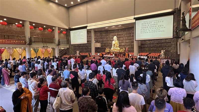 The congregation paid respects to the Head Abbot of FGS, the Most Venerable Hsin Bau, wishing for family well-being and world peace. photo/FGS NZ