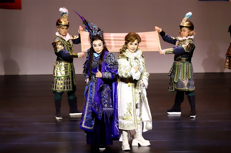 歌仔音樂劇《1624》開放2月23日總彩排場,邀請民眾一同搶先看,圖為彩排時孫翠鳳(左)飾演的鄭芝龍與唐美雲(右)飾演的諾一知_在《荷鄭交鋒》一段對手戲重現出臺灣歷史的重要轉捩點。圖/文化部提供