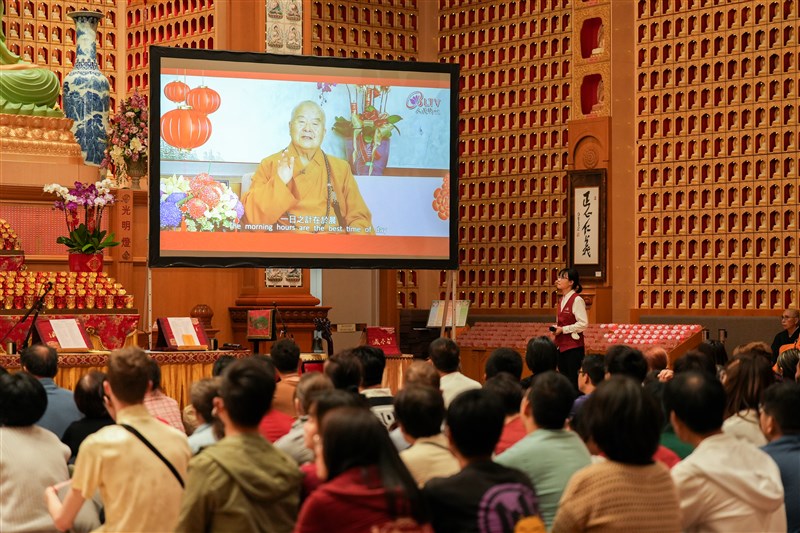 A video featuring Venerable Master Hsing Yun's "New Year's Eve Prayer" was played. photo/The Life News AgencyThe New Year's Blessing Ceremony began at midnight, with the aspiration for all participants to purify their body and mind through practicing the "Three Acts of Goodness" and welcoming the new year. A video of Venerable Master Hsing Yun's "New Year's Prayer" was played, invoking blessings for everyone to eliminate obstacles, cultivate positive aspirations, and increase wisdom. Nan Tien Temple utilized technology to allow remote worshipers to participate by lighting virtual lamps online, expressing respect for the Triple Gem and their aspirations for the new year. The lights in front of the Buddha symbolized the illumination of Buddha's radiance, spreading joy to the hearts of all.
