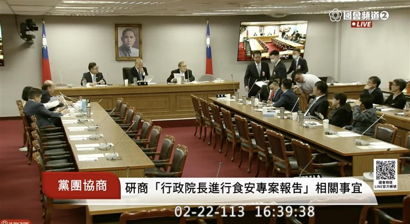 歷經約一小時協商後,各黨團取得共識,朝野協商結論指出,各黨團同意明天邀陳建仁提出有「關民進黨政府執政八年台灣食安問題總檢討」專案報告並備質詢,質詢人數由國民黨黨團推派7人、民進黨黨團推派7人、台灣民眾黨黨團推派1人進行,每位委員詢答時間 15 分鐘;質詢順序依例授權議事處辦理。名單請於2月23日(星期五)上午8時30分前送交議事處彙整,逾時視同放棄。