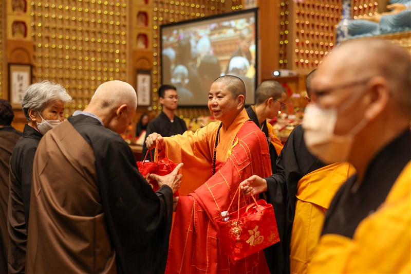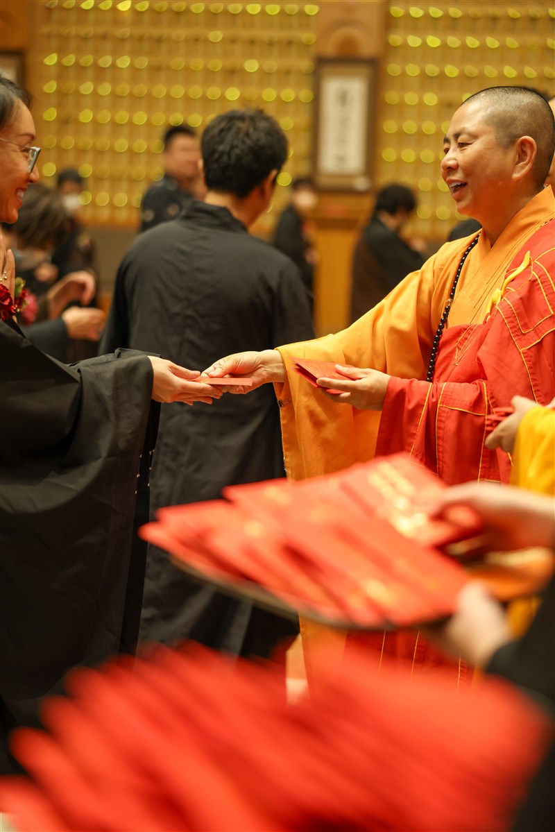 Venerable Man Ko distributed red pockets. photo/The Life News AgencyLenny Fung, who grew up in the BLIA Young Adult Division (YAD), expressed gratitude for returning to the temple to participate in the service. He acknowledged the wisdom of Venerable Master Hsing Yun and appreciated the support of the congregation in making the event successful.