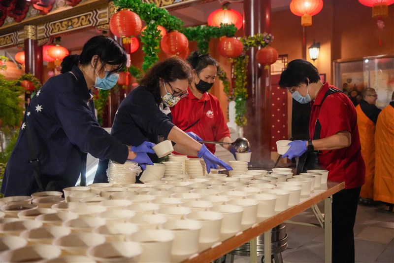 Devotees made offerings to the Triple Gem and feasting the heavenly beings. photo/The Life News AgencyThe Dharma Service commenced at 9:30 PM, with two separate incense processions. Guided by Venerable Man Ko, the attendees followed the ritual to purify the altar, invite the sacred, establish seats, make offerings, dedicate merits, and conclude the ceremony with a farewell to the sacred. The congregation recited scriptures and mantras together, and the auspicious ceremony concluded in the early morning, lasting for three hours.