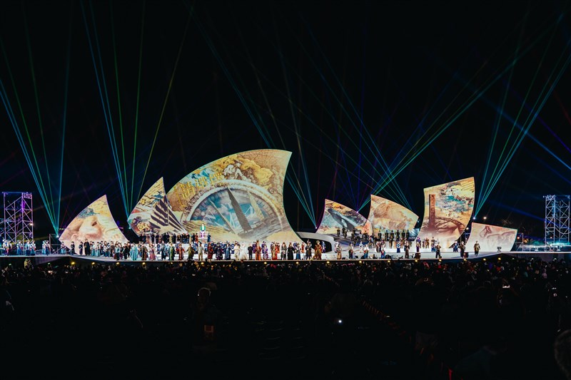 國家劇院舞台5倍大 歌仔音樂劇《1624》明台南磅礡開演 曹麗蕙 |2024.02.23 語音朗讀 861觀看次 字級 大 中 小 歌仔音樂劇《1624》融合現代表演藝術的燈光、舞臺設計,及大型 LED 科技元素,透過歌仔戲的演繹,將台灣的故事推向國際舞台。圖/文化部提供 【記者曹麗蕙台南報導】國家戲劇院五倍大,高18公尺巨型絕美白舞台,矗立在大台南會展中心前,七片弧型布景,隨著燈光影像流動,浪湧濤生,打造婆娑之洋的前世今生。歌仔音樂劇《1624》的大船明(24)、後(25)兩天將在元宵節啟航,這齣匯集孫翠鳳、唐美雲、王海玲、郭春美、小咪、許秀年等21位重量級戲曲巨星的史詩級大戲,今(23日)晚著裝總彩排,吸引許多場戲迷先睹為快,跟著少年玩家Game boy戴上VR眼鏡,重返17世紀大航海時代的台灣。唐美雲(圖左)與孫翠鳳(右),兩大名角同台飆戲,魅力四射。。圖/文化部提供 文化部政務次長王時思表示,《1624》舞台總高18公尺,可說是創下台灣戶外演出的最大舞台,目的是希望帶領所有的觀眾,一起回到當年台灣與世界相遇的海上。「希望用自己的聲音說自己的故事」,王時思指出,《1624》集結了台灣戲曲界國家級團隊、最多元的音樂,期盼讓全台灣人重新認識台灣,認知台灣早於17世紀就已成為「世界史」的場所,並且藉由戲劇的感動,意識到作為臺灣人是多幸福、驕傲的事。歌仔音樂劇《1624》的大船明(24)、後(25)兩天將在元宵節啟航,這齣匯集孫翠鳳、唐美雲、王海玲、郭春美、小咪、許秀年等21位重量級戲曲巨星的史詩級大戲,今(23日)晚著裝總彩排,吸引許多場戲迷先睹為快。圖/記者曹麗蕙 導演李小平則分享,《1624》計畫製作過程約一年,耗費資源各位有目共睹,「只有一個心願,想要留一個台灣可以見證到的歷史事件,400年留給我們的一些成績」。他說,所有參與的戲曲團隊,年前年後是自己劇團最熱鬧的時候,但都撥出來時間,來投入排練,「就甘心、就甘心」。以光影、影像與演員呈現十七世紀海上征戰。圖/文化部提供 孫翠鳳感冒失聲 彩排先請代唱 靜養喉嚨明天演出孫翠鳳則因感冒失聲,總彩排時喉嚨還是微啞,昨、今兩天都已經就醫打針,因此決定在今天總彩時先代唱,部分親說口白,靜養喉嚨用在明後天正式演出。傳藝中心表示,《1624》匯集戲曲界天王天后,跨世代攜手共演,串聯幕前幕後500人大陣仗,打造一個個令人銘記在心的場面。名角同台飆戲,明星魅力四射,海戰場面氣勢宏大,以劇場再現歷史現場。台灣豫劇皇后王海玲,飾演傳遞祖靈訊息的女性祭司尪姨。圖/文化部提供 由傳藝金曲獎得主組成的音樂設計團隊匠心獨運,為了呈現17世紀台灣豐富多元的文化,音樂融合歌仔調、西拉雅古調、電玩音樂、古典樂、和樂等,新生代還大唱台語rap。美妙音樂裡還蘊藏一個小彩蛋,音樂設計團隊將「1624」巧妙轉化為貫串全劇的旋律「Do–La–Re–Fa」,讓來自台灣地靈深處的悸動之聲傳入每位觀眾心底。郭春美飾演印姊瓦定,詮釋海上女海賊的颯爽剽悍。圖/文化部提供 為呈現磅礡的大時代故事,《1624》搭配了絕美壯闊的舞台設計,製作團隊年前便進駐活動會場,經歷為期數月的整地與舞台搭建,高達18公尺的巨型舞台大功告成,特殊的造型十分吸睛,已在這段時間內成為台南高鐵站外一道亮眼的風景。長老理加(小咪飾)與濱田彌兵衛(陳昭香飾)在平戶討論獻圖一事。圖/文化部提供 文化部表示,《1624》歌仔音樂劇現場設有20000個座位,包含500席的敬老席與愛心席。各座位區塊間設有直行通道,以利觀眾通行順暢。會場周邊亦設立醫護站,並配置醫護人員,提供緊急救護需求。對無法蒞臨現場的民眾,亦提供同步直播,包含公視台語台、LINE TODAY、線上串流平台等多種收看管道。《1624》精采的演出,全體演員在觀眾的掌聲中一同謝幕。圖/文化部提供 前一篇文章 北市編列3千萬 再造新世代學習空間 下一篇文章 台大火警反應快 蔣萬安盼各局處次次到位 熱門新聞 01【閃文集】 駝峰天使2025.11.0402台中新社花海 重現經典卡通2025.11.0603WTA、ATP年終賽 獎金創新高2025.11.0704佛光佈教師、友愛服務隊 精進行佛2025.11.0605《365日》贈嘉義香湖國際大飯店 佛光人結書香善緣2025.11.0606星雲大師全集【傳記】百年佛緣─生活篇 我的衣食住行 5 - 22025.11.0407星雲大師全集【傳記】百年佛緣─生活篇 我的衣食住行 5 - 32025.11.0508腸道是人體第二大腦 影響情緒睡眠免疫力2025.11.0409山本由伸 拚美職首座賽揚獎2025.11.0510古老金幣2025.11.05 訂閱電子報 台北市 天氣預報 台灣一週天氣預報 相關報導 訪歐返台 蕭美琴:處境艱難不退縮魏哲家:黃仁勳來要更多晶片興達電廠 應變演練澎湖馬祖包機 空中交通創舉中興新村活化 省主席官邸變身餐廳翡翠水庫支援發電 台電須付補償費 作者其他文章蔬食人物誌、94素Podcast 精采首發時尚老人捐設備 點亮逆風少年舞台夢台北雙年展 思慕為橋連結世界金漫獎 黃健和獲特別貢獻獎台北藝博會 趙無極、草間彌生作品吸睛國際佛光會 3度獲公益金質獎