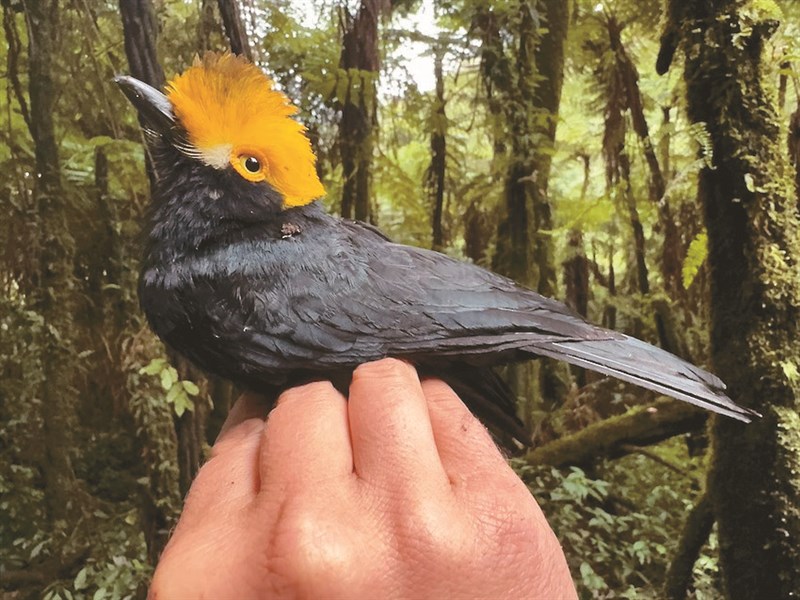 【本報綜合外電報導】美國德州大學埃爾帕索分校(UTEP)的研究人員,近日在剛果民主共和國的茂密叢林中,發現近二十年來未曾被見過的黃冠鶲(Prionops alberti),這種鳥類曾被認為可能已經絕種,現在不僅被發現,還首次被拍攝下來。研究團隊在伊通布威山脈的深處跋涉一百二十公里,終於在叢林的中層發現這些活躍又吵鬧的群體。