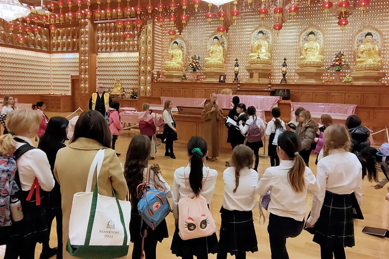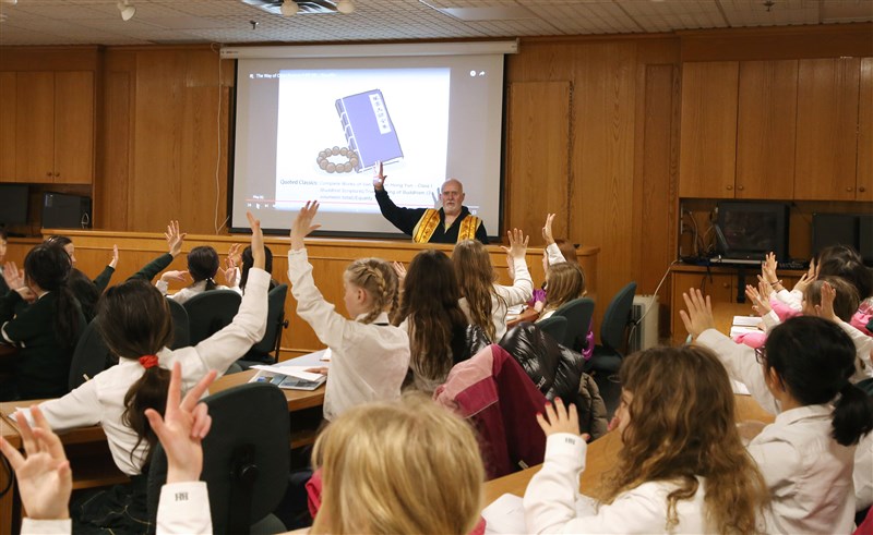 43 fourth-grade students from Branksome Hall, a private girls school in Toronto, visited FGS Toronto on February 13th. Ven. Ru An explaining Humanistic Buddhism and the importance of practicing the Three Acts of Goodness. photo/The Life News Agency