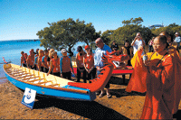 龍舟灑淨、開光點睛 圖與文/人間社記者吳秀華 |2008.06.24 語音朗讀 534觀看次 字級 大 中 小 澳洲布里斯本東區Victorial point帆船勝地,Redland龍舟協會新購三艘龍舟,二十二日舉行下水啟用典禮,中天寺住持覺善法師、妙來法師帶領龍舟協會隊員逾一百人,在碼頭為龍舟啟用祈福祝禱;覺善法師並為龍舟灑淨、開光點睛,祈祝龍舟啟用平安順利。龍舟開光點睛後,龍舟協會依照中國習俗,隊員滑著三艘龍舟將粽子投入海中,並且撒下鮮花祭祀水神,完成龍舟啟用儀式。市長Melva Hobson致詞祝賀;龍舟協會執行長Warren Ashley則感謝法師主持典禮,並表示祈福祝禱儀式莊嚴感人。 前一篇文章 佛光幼、童軍受銜 信守諾言與規律 下一篇文章 《佛光山靈感錄》{163}蓮花化生(下) 熱門新聞 01尋光2025.12.0402【閃文集】 威尼斯印記2025.12.0203淡水、基隆、汐止21萬戶停水 爆民怨2025.12.0204印尼棉蘭水患 佛光人送物資救援2025.12.0205阿聯駐馬大使館國慶宴會 佛光山受邀出席2025.12.0206東南亞洪災 逾1100死、400萬人受災2025.12.02072025暢銷書 文學圖文雙主軸霸榜2025.12.0508全球復蔬 寶塔寺佛光人公益健走2025.12.0209駐澳代表處與雪梨文教中心 參訪西澳道場2025.12.0410好事飯店 善行換取溫飽2025.12.03 訂閱電子報 台北市 天氣預報 台灣一週天氣預報 相關報導 緬懷星雲大師 全球佛教學者暢談人間佛教245校雲端交流 凝聚三好共識推廣生命教育 林聰明獲特殊貢獻獎西方寺瑜伽課 接引民眾結法緣元宵乞龜 390兩大金龜亮相基督城地震10年 佛光山領眾祈願
