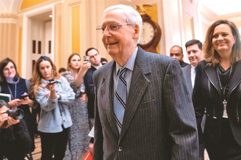 82歲的美國參院少數黨領袖麥康諾(前),2月28日宣布11月卸任。圖/法新社