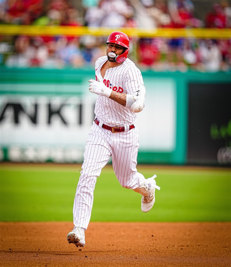 卡斯特蘭諾斯在兒子面前開轟。圖/取自費城人推特