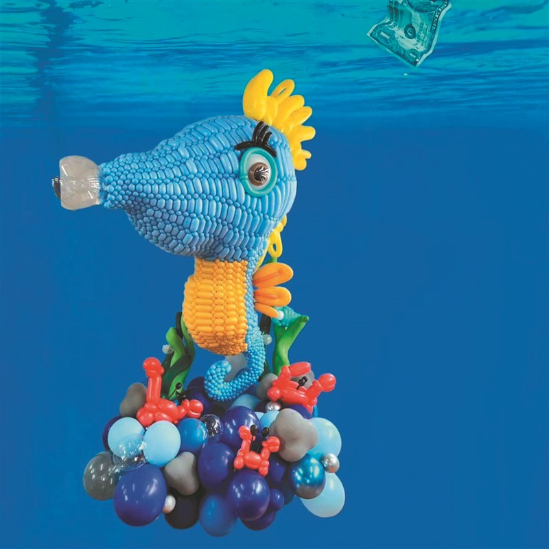 彭思泰以海馬為造型,製作氣球雕塑作品。