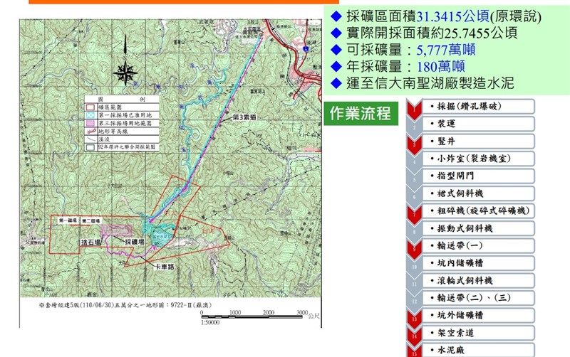 信大水泥第二礦場第三採掘場開發案,今日環委決議退回。圖/截自環評書件