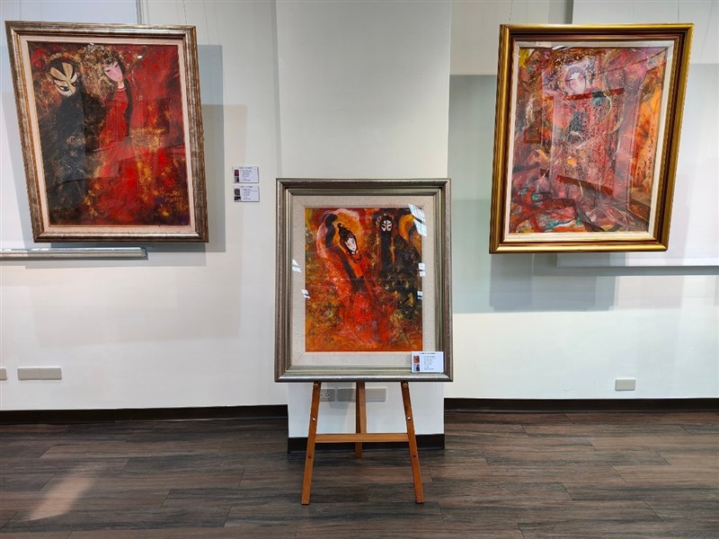 台大舉辦「懷念曾永義院士戲曲紀念展–許美玲當代書畫創作展」展出已故中研院士曾永義的相關著作和影音作品,銘傳大學副教授許美玲也以油畫創作來紀念恩師曾永義。圖/台大提供