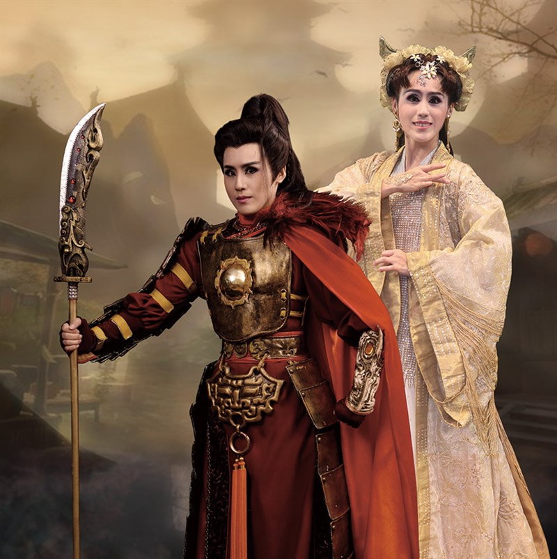 明華園總團青年演員年度新戲《借名》由陳昭賢分飾二角扮演一對雙胞胎兄妹,挑戰演技。圖/明華園總團提供 3月16、17日輪番上演的《旗亭風雲-盜情》,以「台語歌舞劇」為創作概念,將1920 年代大稻埕知名酒家「東薈芳」、「江山樓」之間的糾葛搬上舞台,創作團隊跳脫傳統戲劇的框架,嘗試將傳統鑼鼓點、曲牌等歌仔戲音樂元素融入作品中,在大稻埕戲苑演大稻埕的故事,劇中並特邀歌手于浩威與在明華園《媽祖》中飾演「少女媽祖」的美聲小旦陳昭婷、歌仔戲新秀王婕菱同台尬戲。