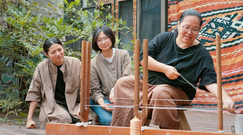 藝術家尤瑪‧達陸(圖右)教導傳習生平纏法。圖/公視提供