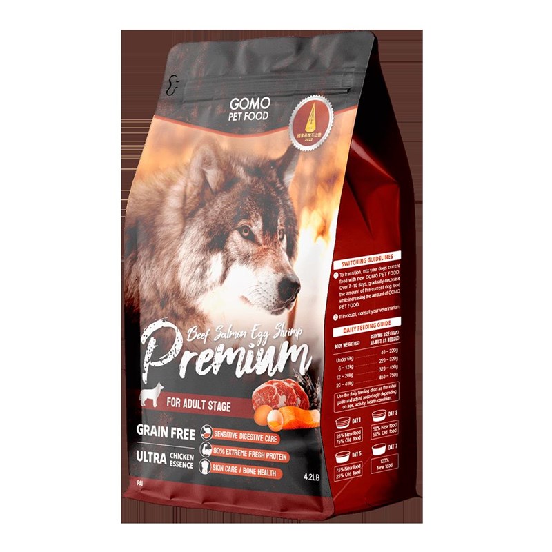 台南市動物防疫保護處近日到毛能寵物營養生技股份有限公司採樣1件GOMO PET FOOD 成犬無穀牛肉根島蝦飼料(製造日期2023年8月11日,產品批號:MFG20230811) 檢出重金屬鎘含量2.2 ppm超出安全容許量標準(2ppm)。圖/擷取自GOMO PET FOOD 官網