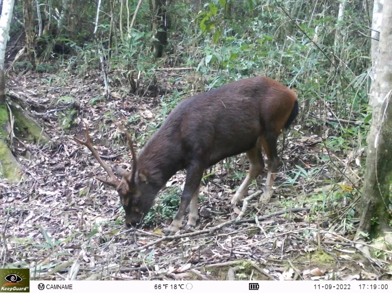 太魯閣國家公園管理處委託屏東科技大學調查監測野生哺乳動物,自動相機在海拔661公尺的地方拍到台灣水鹿,是15年來首度在中低海拔現蹤。圖/太管處提供