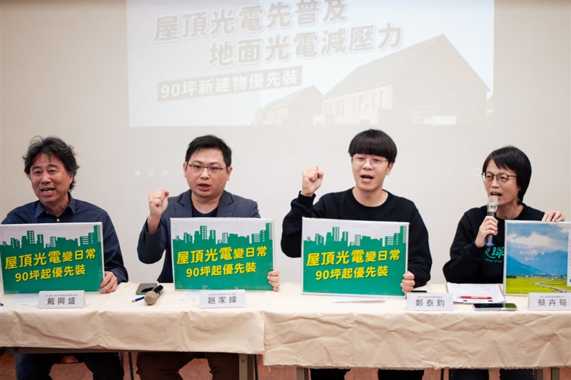 環團今日呼籲,我國地狹人稠,應優先推動90坪屋頂光電,可減緩地面光電裝設壓力。圖/地球公民基金會提供