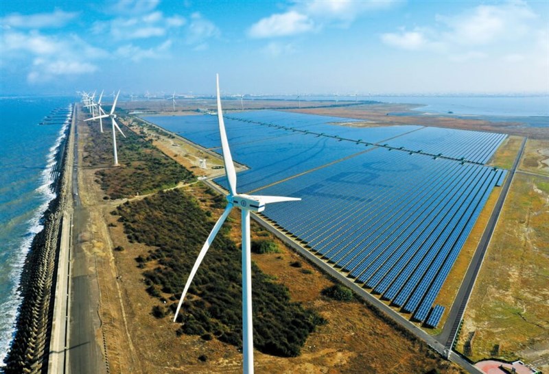 圖為「彰濱雙綠能」太陽光電場暨風力發電場。圖/台電提供
