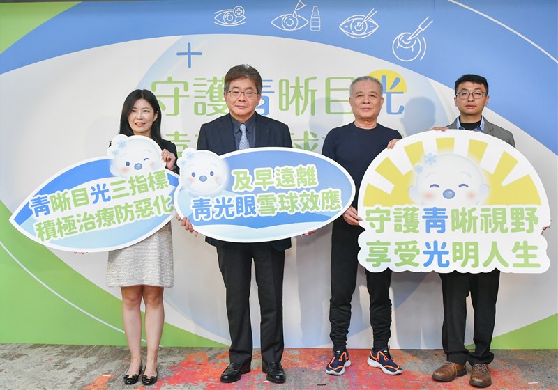 左起為亞東醫院眼科部青光眼科主任張珮瑤、台灣青光眼關懷協會理事長呂大文、青光眼病友張先生、魏先生,共同鼓勵高風險族群定期檢查、患者與醫師討論合適治療方案,遠離青光眼「雪球效應」。圖/台灣青光眼關懷協會提供